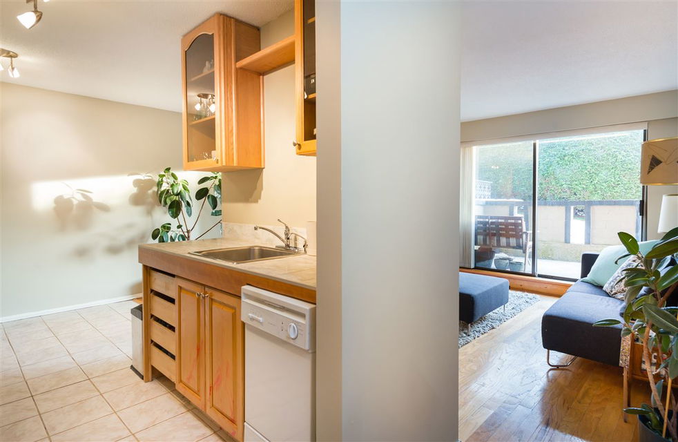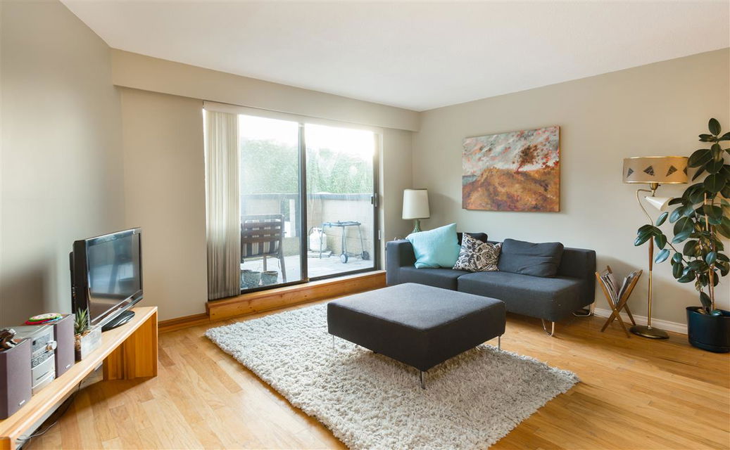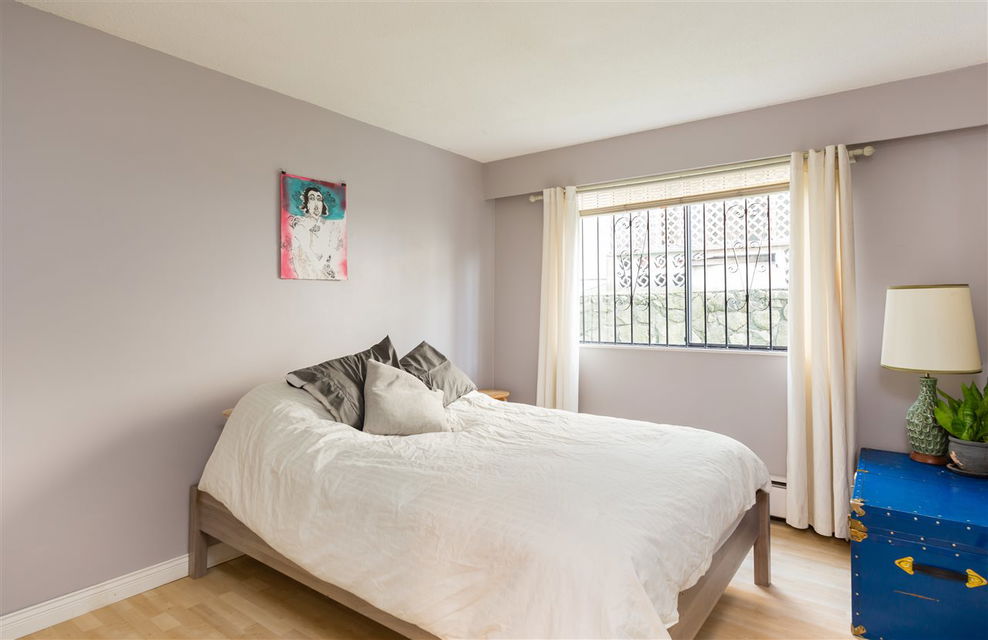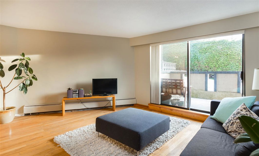 Fresh and clean 2 bedroom, ground floor corner unit with nice outdoor space in a great neighbourhood. South facing unit gets loads of natural light from double sliding glass doors. Walk out to a cute patio and common property lawn space with privacy hedge. Strata Fees include Heat and Hot Water.