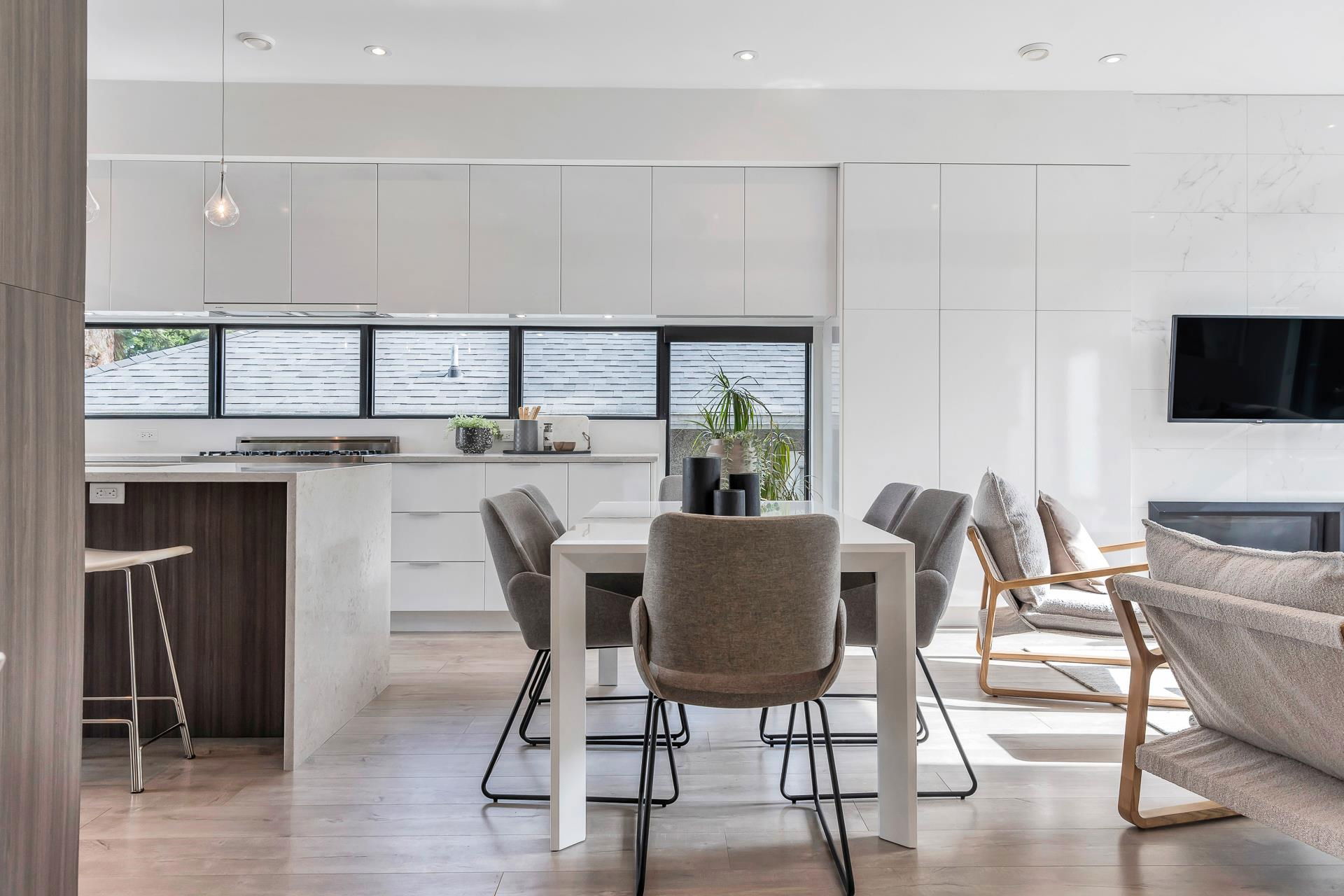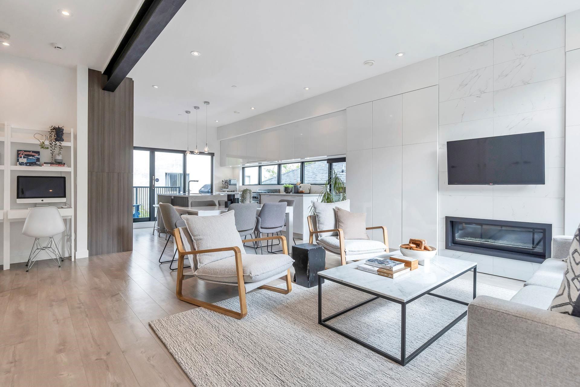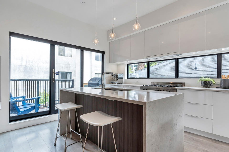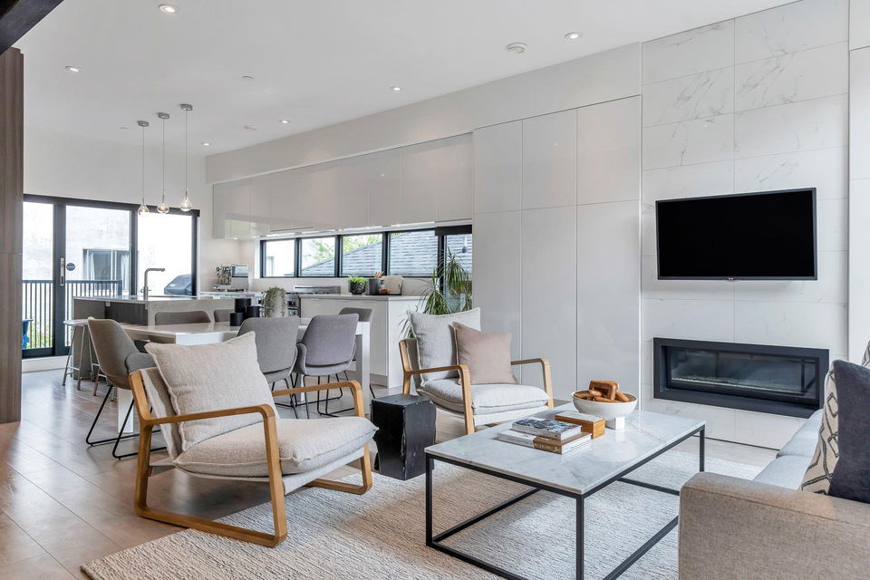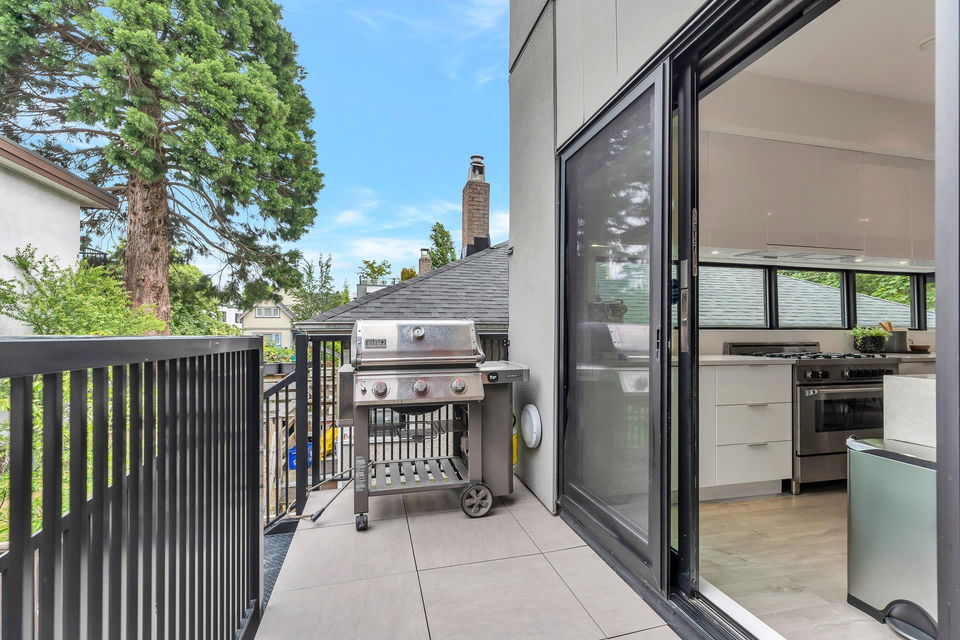 Exceptional WEST OF MAIN modern, architecturally designed 1/2 DUPLEX with VIEW ROOF TOP DECK! Main living offers light & bright open plan with over height ceilings, separate den/office & powder bath. Seamless kitchen features oversized window backsplash, 2 tone wood grain/white lacquer cabinets,equipped with high end appliances: Bertazzoni gas range, Bosch dishwasher, Fisher Paykel fridge plus built in microwave. Upper level provides 3 beds, 2 bath & laundry with access to LARGE 286 SQFT roof deck w/gas&water showcasing views of the city & mountains! Above ground lower-level offers bedroom & bath, currently set up as family room, roughed-in for bar. Attached garage EV Ready & outside storage. Great location steps to Mt. Pleasant Park & vibrant restaurants/shops of Main St.