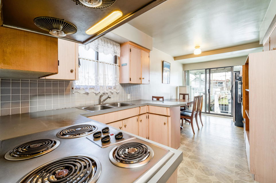 5 bedroom house on a giant 7,000+ square foot extra long lot 33 x 213. Very livable house that could be easily freshened-up and made into a fantastic family home for extended families or configured to bring in revenue to help off-set mortgage payments. Lots of options and room to grow with this house and unique lot. 2 kitchens and separate entrances makes this a great home for 2 families and / or Rental options. Massive decks, large fenced front and back yard. Great home to live, rent or hold as a long term investment with potential for creative development options in the future.