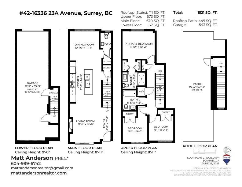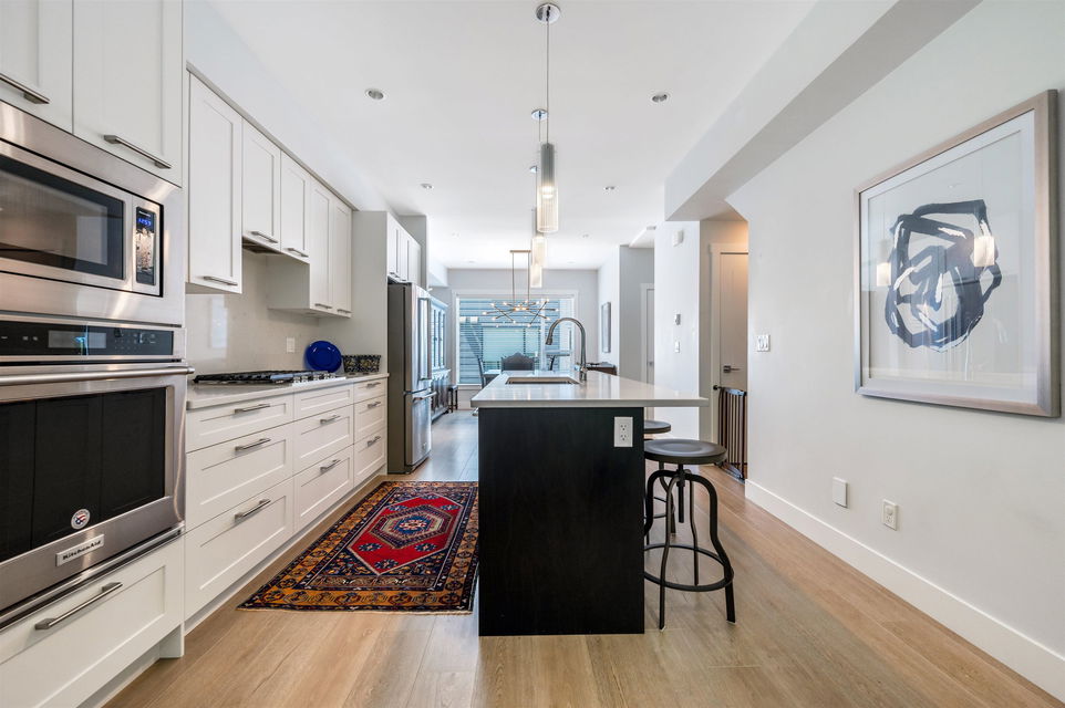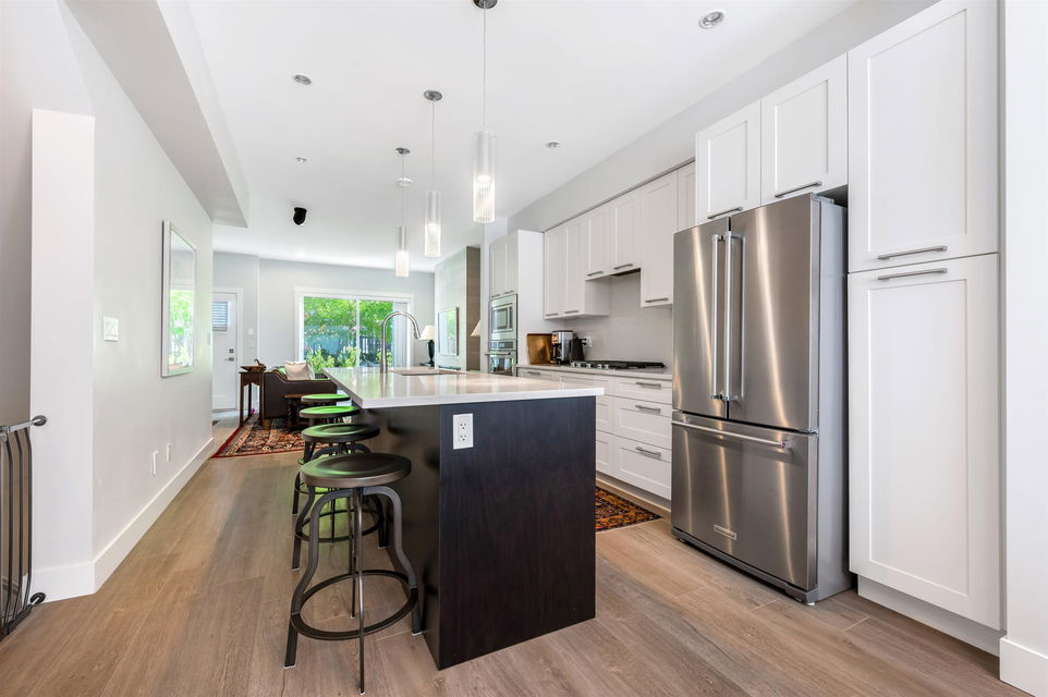 Bright & Beautiful 3bd 3ba townhouse in SOHO. Ideal for family with 3 bdrms on top floor. This meticulously maintained modern townhouse boast 1521 sq ft of living space. Main level has loads of light with dbl sliding glass doors opening on to a lovely patio area. Living room has a cozy fireplace, modern kitchen with a large island and gas range. Stunning roof top deck with amazing mountain and city views provides an extra 449 sq ft of outdoor living. Perfect for summer BBQ’s, entertaining or just relaxing. A massive garage with over 500 sq ft of useable space completes this very functional and family friendly home. The complex has a recreation centre, kids playground and party room. Don’t miss this one. Call today to schedule your viewing.
