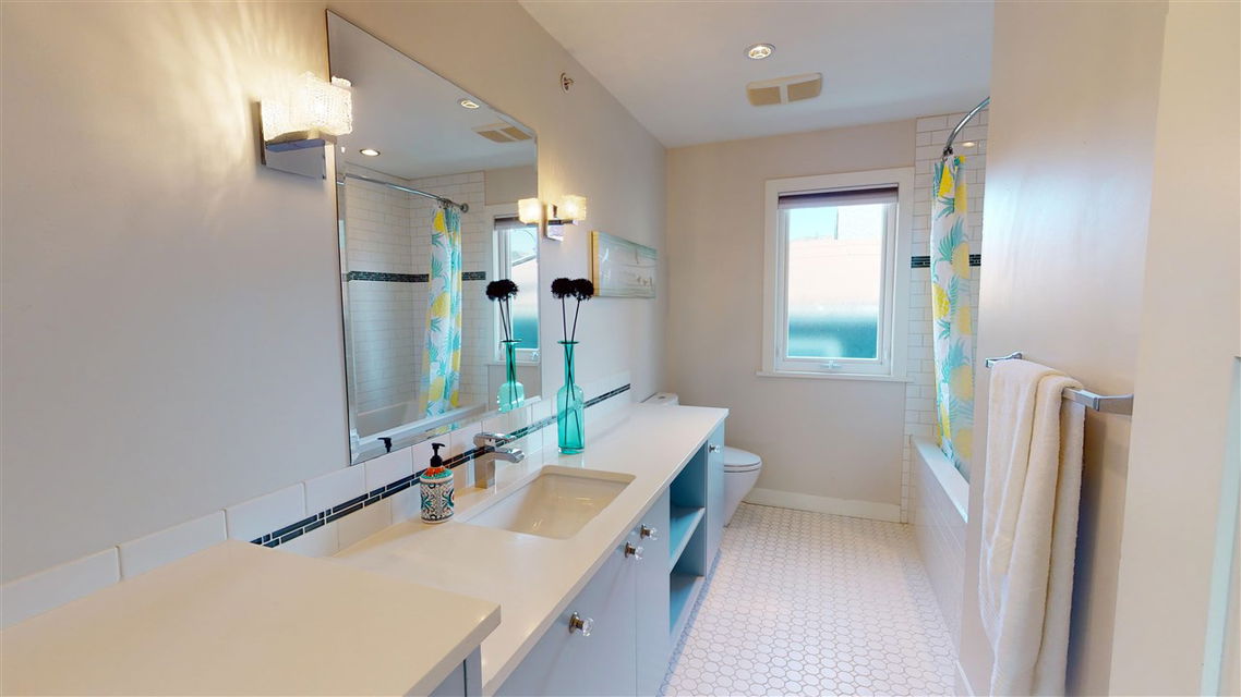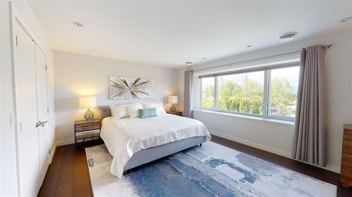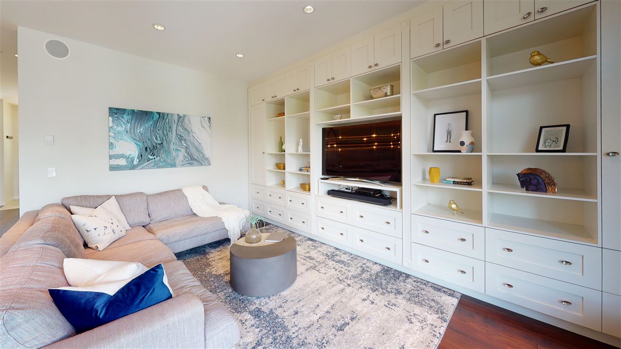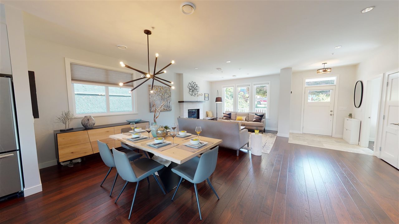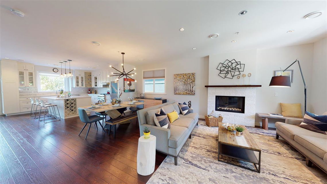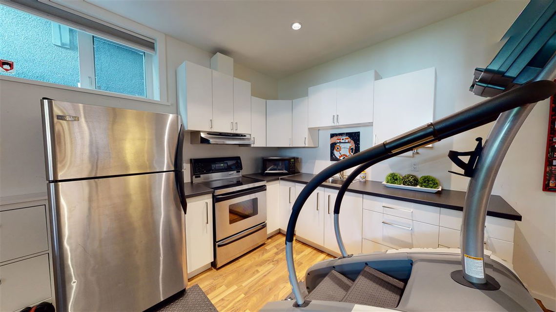 Main/Fraser family home on a wonderful street. Nearly 3300 SQFT on extra deep 37′ x 143′ lot. This 12 year old home features spacious open plan living & generous room sizes. Fabulous kitchen/fam rm with built ins is perfect for entertaining with large island and french doors open to 420 SQFT Brazilian h/w deck with firepit and gas BBQ hookup. Formal dining & living with gas fp, office and powder room on main. H/W floors & A/C on main and up, radiant in floor heat throughout. 3 large bedrooms + laundry up, expansive master suite with great mountain views. 4th bdrm and full bath down ideal for a nanny plus what could be a bachelor or 1 bdrm suite currently all owner occupied. Terrific fenced yard and double garage with lane access.