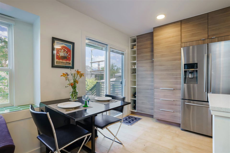 This is it! Extremely well appointed, completely updated, spacious back 1/2 duplex in the heart of Strathcona. Covering almost 950 sq ft, this character home features tons of natural light, newer hardwood on the main floor, along with updated kitchen & bathrooms. The open plan layout is perfect for families, and entertaining. There’s an abundance of storage space, including a 4′ crawl space that’s the footprint of the property. The main floor opens up to a lush and private backyard, ideal for enjoying a BBQ. The large garage gives you options for parking, work from home space or more storage. You’re only a stones throw from transit, schools, Downtown, Olympic Village, parks & transit. Across from Strathcona Elementary, 1 block to MacLean Park. No maintenance fees here. Call today!