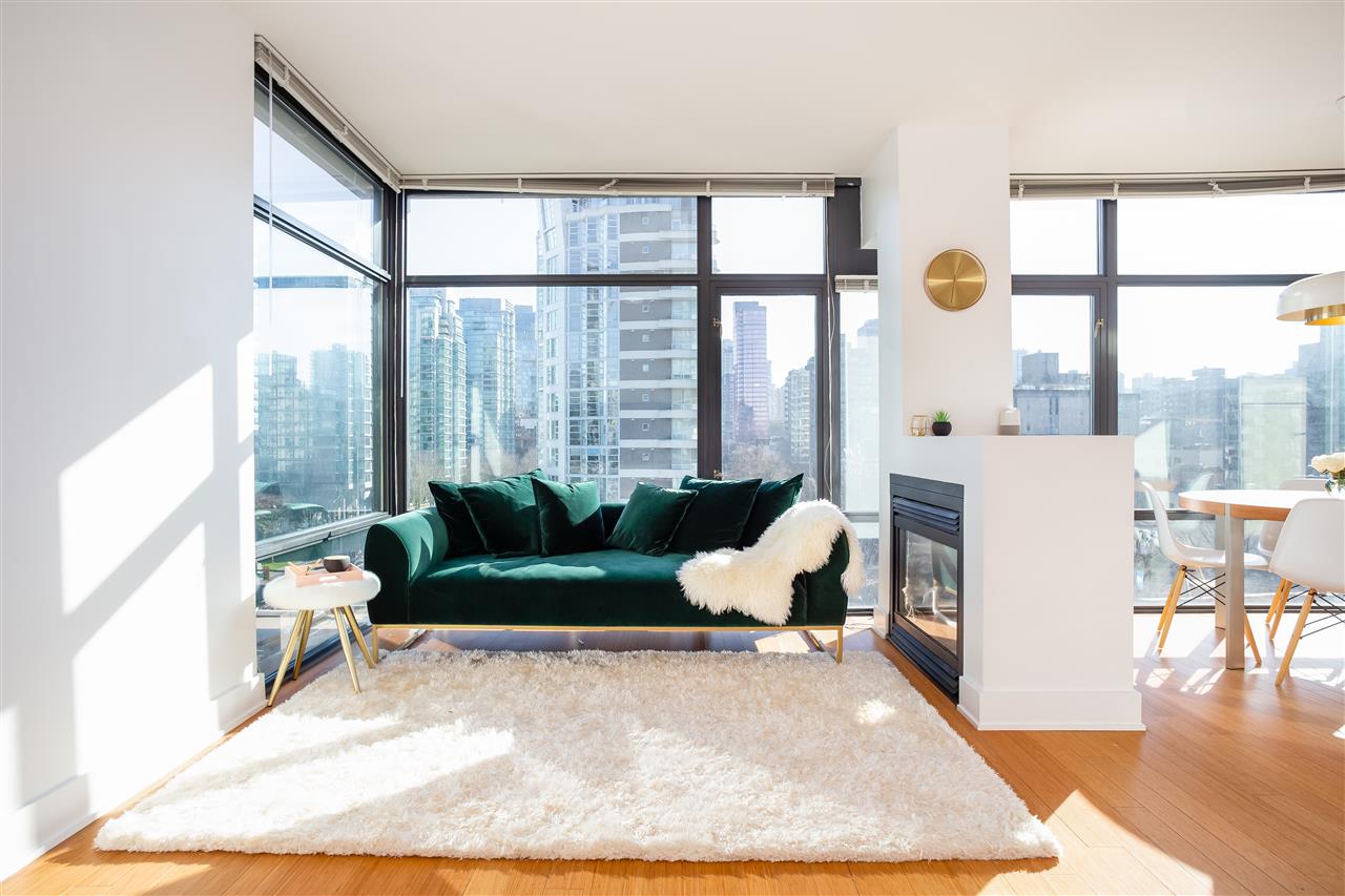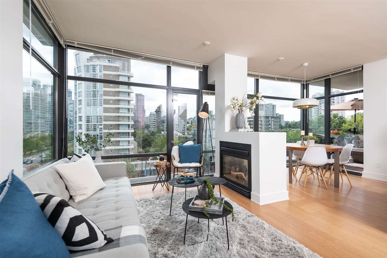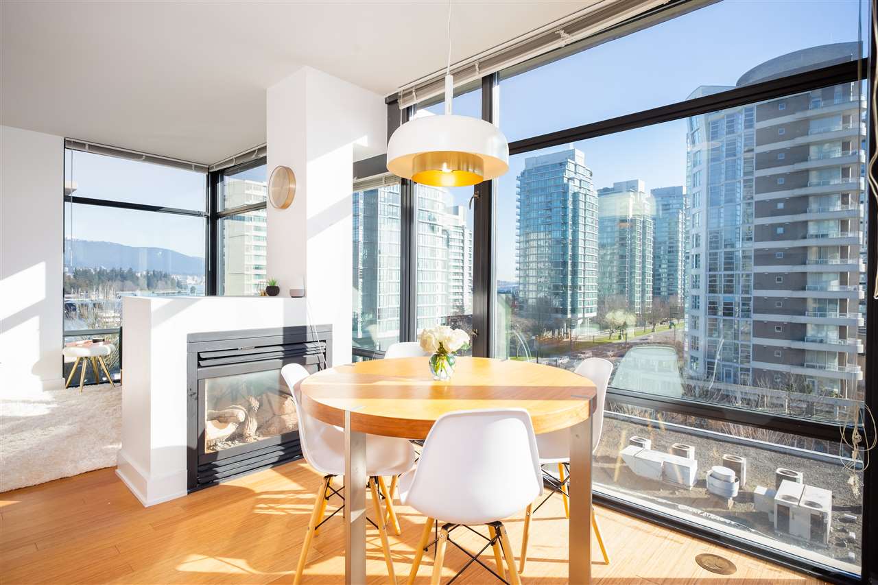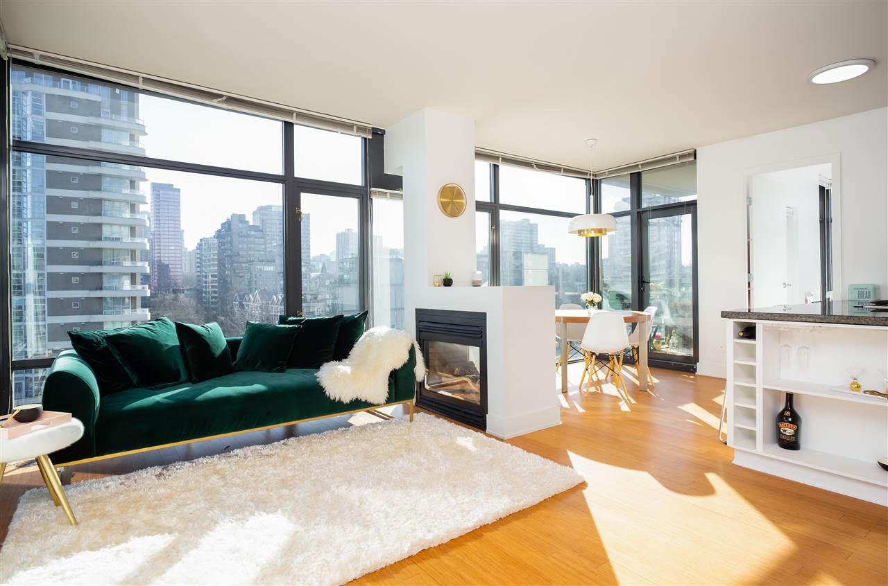 LOCATION, STYLE, VIEW + exceptional PRICE! 2bd, 2ba plus balcony & solarium/office. This amazing high-end corner unit has fantastic views of the Ocean, Coal Harbour and North Shore Mtns. Offered at a price that was unimaginable a year or two ago. Roll back the clock and pick this gorgeous downtown condo up at yesterday’s prices, today! Beautifully appointed with high ceilings, great light from floor to ceiling windows in 3 directions. Stunning living/dining area with 2-sided fireplace, gourmet open kitchen. King size master w/ big closets & extensive built-ins. Spa like en suite with claw foot tub, walk in shower. Bamboo flooring, granite & marble counters, high-end appliances, air conditioning, gas fireplace. Quality fitness centre & concierge. Balcony, Parking and Storage. This is it!!!