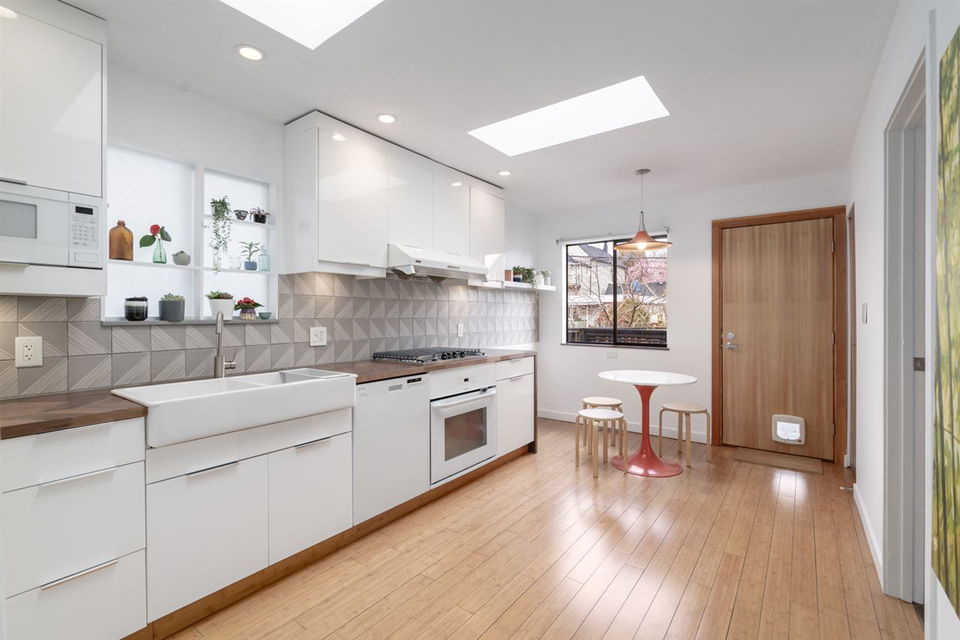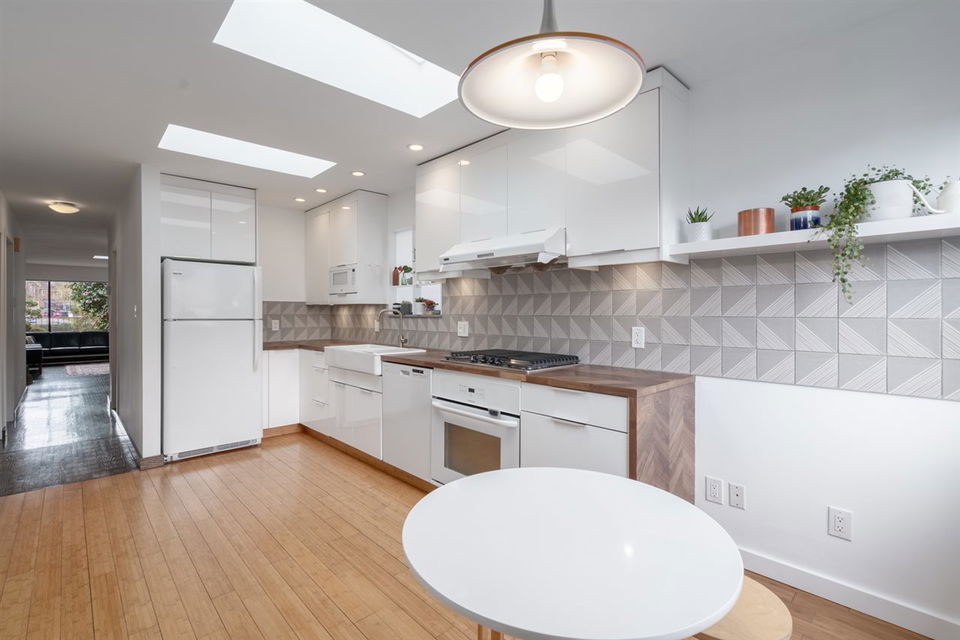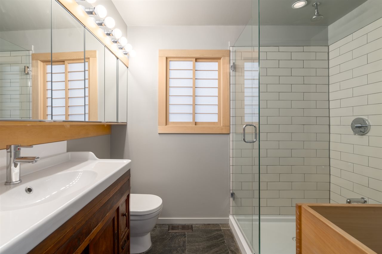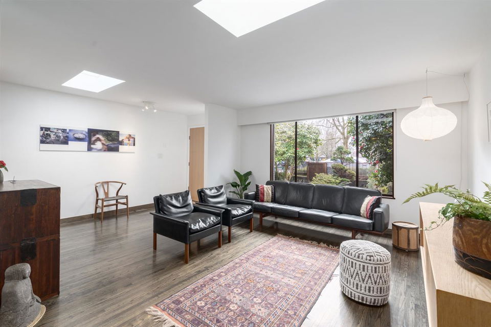 Rare parkside living in Strathcona! This fantastic bungalow is on what locals consider one of the best streets in the ‘hood. At over 2,100 SF, this impeccably kept home has a zen aesthetic inside & out, easy-care evergreen landscaping, & lots of privacy. W/ numerous skylights, this light-filled home’s main offers 3 beds, an updated bath, a remodelled kitchen, & solid oak/bamboo floors. Below, the at-grade lower level was reno’d to the studs in 2014, w/ all-new polished concrete floors, full bath, laundry room, & a rec room that could convert into a 5th bed. Lower level fts radiant in-floor heating, high-eff boiler, all new elect & plum. Spacious garden-side bed can easily be sectioned off into a suite or office/studio. Open by Appt: Sun, June 21st, 2 – 3 pm
